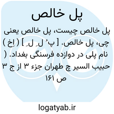 پل خالص. [ پ ُ ل ِ ل ِ ] ( اِخ ) نام پلی در دوازده فرسنگی بغداد. ( حبیب السیر چ طهران جزء 3 از ج 3 ص 161 ).