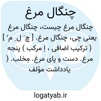 چنگال مرغ. [ چ َ ل ِ م ُ ] ( ترکیب اضافی، اِ مرکب ) پنجه مرغ. دست و پای مرغ. مِخلب. ( یادداشت مؤلف ).