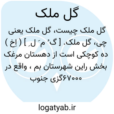 گل ملک. [ گ ُ م َ ل ِ ] ( اِخ ) ده کوچکی است از دهستان مرغک بخش راین شهرستان بم، واقع در 67000گزی جنوب خاوری راین و 2000گزی راه شوسه بم به جیرفت. دارای 30 تن سکنه است. ( از فرهنگ جغرافیایی ایران ج 8 ).