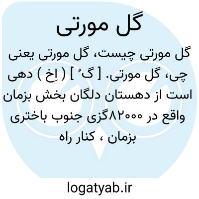 گل مورتی. [ گ ُ ] ( اِخ ) دهی است از دهستان دلگان بخش بزمان واقع در 82000گزی جنوب باختری بزمان، کنار راه مالرو بمپور به کهنوج. هوای آن گرم و دارای 500 تن سکنه است. آب آن از قنات و محصول آن غلات، خرما و لبنیات است. شغل اهالی زراعت و گله داری و راه آن مالرو است. ( از فرهنگ جغرافیایی ایران ج 8 ).