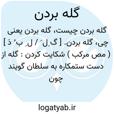 گله بردن. [ گ ِل َ / ل ِ ب ُ دَ ] ( مص مرکب ) شکایت کردن: