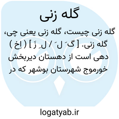 گله زنی. [ گ َ ل َ / ل ِ زَ ] ( اِخ ) دهی است از دهستان دیربخش خورموج شهرستان بوشهر که در 108000گزی جنوب خاور خورموج و جنوب کوه نمک واقع شده است. هوای آن گرم و سکنه آن 306 تن است. آب آنجا از چاه تأمین میشود. محصول آن غلات، خرما و شغل اهالی زراعت و راه آن مالرو است. ( از فرهنگ جغرافیایی ایران ج 7 ).