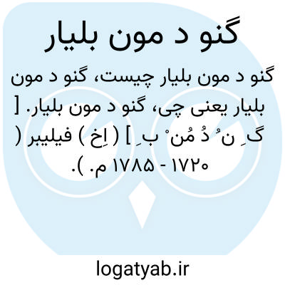 گنو د مون بلیار. [ گ ِ ن ُ دُ مُن ْ ب ِ ] ( اِخ ) فیلیبر ( 1720 - 1785 م. ). طبیعی دان فرانسوی که در سمور متولد شد. وی در تألیف بسیاری از آثار بوفون با وی همکاری کرده است.