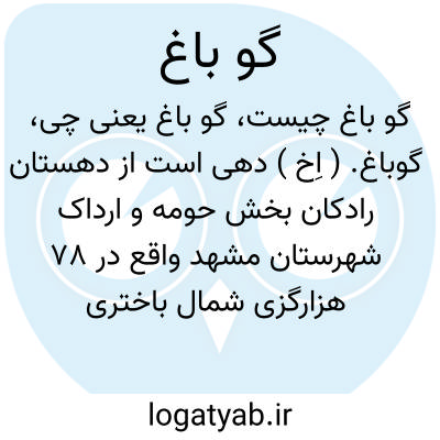 گوباغ. ( اِخ ) دهی است از دهستان رادکان بخش حومه و ارداک شهرستان مشهد واقع در 78 هزارگزی شمال باختری مشهد و 2 هزارگزی جنوب راه مشهد به رادکان. هوای آن معتدل است و 95 تن سکنه دارد. آب آن از قنات تأمین میشود. محصولش غلات، چغندر و شغل اهالی زراعت و مالداری است. راه اتومبیلرو دارد. ( از فرهنگ جغرافیایی ایران ج 9 ).