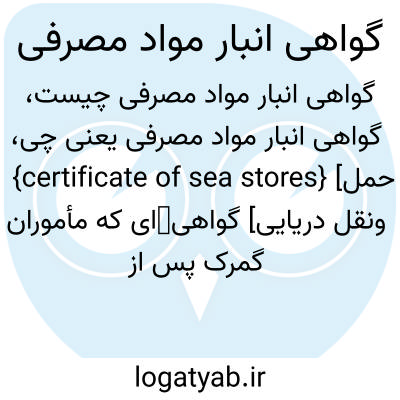 {certificate of sea stores} [حمل ونقل دریایی] گواهیای که مأموران گمرک پس از مهروموم انبار آذوقه و لوازم کشتی هایی که مبدأ حرکت آنها بنادر خارجی بوده است صادر می کنند