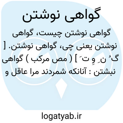 ( مصدر ) گواهی خود را در ورقه ای ثبت کردن شهادت کتبی دادن: آنان که شمردند مرا عاقل و هشیار گو تا بنویسند گواهی به جنونم. ( سعدی )