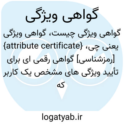 {attribute certificate} [رمزشناسی] گواهی رقمی ای برای تأیید ویژگی های مشخص یک کاربر که توسط یک نهاد ثالث رسمی مورداعتماد امضا شده است