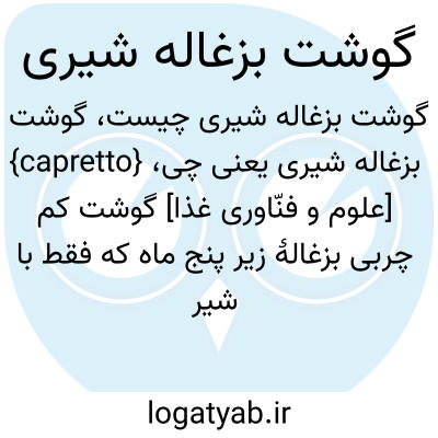 {capretto} [علوم و فنّاوری غذا] گوشت کم چربی بزغالۀ زیر پنج ماه که فقط با شیر تغذیه شده باشد