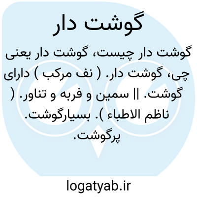 ( صفت ) ۱ - دارای گوشت. ۲ - فربهچاق گوشتالو. یا میوه کدو بادنجان گوشت دار. آنچه قسمت ماکول میان پوست و هست. آن کاملا پر باشد.