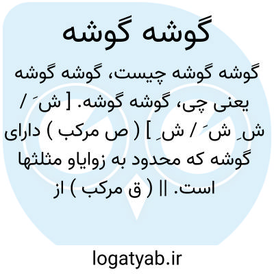 گوشه گوشه. [ ش َ / ش ِ ش َ / ش ِ ] ( ص مرکب ) دارای گوشه که محدود به زوایاو مثلثها است. || ( ق مرکب ) از این گوشه به آن گوشه و از این طرف به آن طرف. ( ناظم الاطباء ).