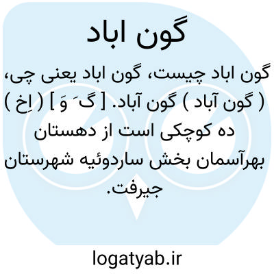 ( گون آباد ) گون آباد. [ گ َ وَ ] ( اِخ ) ده کوچکی است از دهستان بهرآسمان بخش ساردوئیه شهرستان جیرفت. واقع در 36000 گزی جنوب ساردوئیه و 14000 گزی جنوب راه مالرو بافت به ساردوئیه. سکنه آن 12 تن است. ساکنان از طایفه کوهستانی هستند. ( از فرهنگ جغرافیایی ایران ج 8 ).، گوناباد. ( اِخ ) گونابد. گنابد. گناباد. جنابذ. رجوع به گناباد شود.