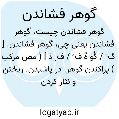 گوهر فشاندن. [ گ َ / گُو هََ ف َ / ف ِ دَ ] ( مص مرکب ) پراکندن گوهر. در پاشیدن. ریختن و نثار کردن جواهر. || بخشش های شایان کردن. کرم و سخاوت نمایان کردن. || باران باریدن از ابر. || سخن های نادره و بلیغ و فصیح گفتن. || کلمات رسا و بلیغ نوشتن. رجوع به گوهر افشاندن شود.