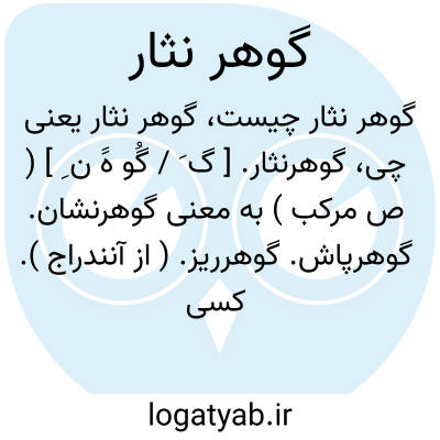 گوهرنثار. [ گ َ / گُو هََ ن ِ ] ( ص مرکب ) به معنی گوهرنشان. گوهرپاش. گوهرریز. ( از آنندراج ). کسی که جواهر نثار میکند. ( ناظم الاطباء ). رجوع به گوهرفشان شود.