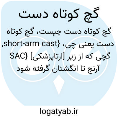 {short-arm cast, SAC} [ارتاپزشکی] گچی که از زیر آرنج تا انگشتان گرفته شود