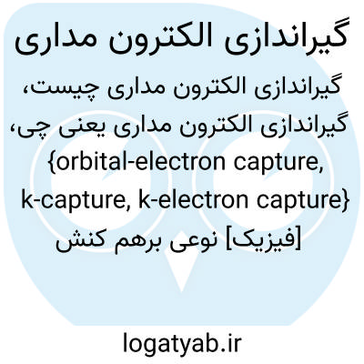 {orbital-electron capture, k-capture, k-electron capture} [فیزیک] نوعی برهم کنش در واپاشی بتازا که در آن هسته، الکترونی را از پوسته می رباید و یک نوترینو آزاد می شود