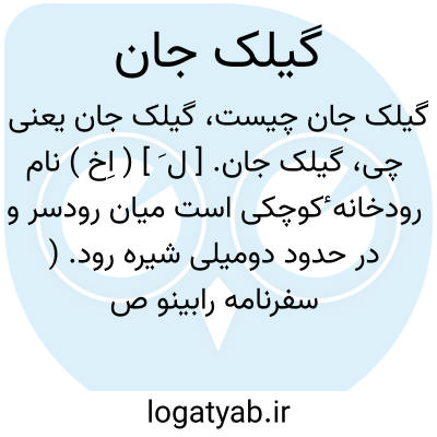 گیلک جان. [ ل َ ] ( اِخ ) نام رودخانه ٔکوچکی است میان رودسر و در حدود دومیلی شیره رود. ( سفرنامه رابینو ص 18 انگلیسی و ص 38 ترجمه فارسی ).