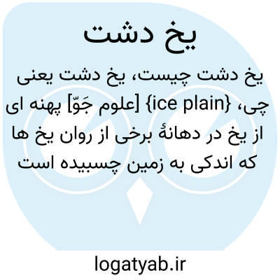 {ice plain} [علوم جَوّ] پهنه ای از یخ در دهانۀ برخی از روان یخ ها که اندکی به زمین چسبیده است