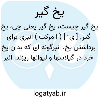 یخ گیر. [ ی َ ] ( اِ مرکب ) انبری برای برداشتن یخ. انبرگونه ای که بدان یخ خرد در گیلاسها و لیوانها ریزند. انبر برای برگرفتن یخ و افکندن آن در ظرف آبخوری و شربتها و غیره. || قلابی برای ریختن قطعات یخ طبیعی از زمینهای مجاور یخچال به داخل گودها. آکج. آکنج. نشگن. ( یادداشت مؤلف ).