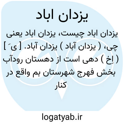 ( یزدان آباد ) یزدان آباد. [ ی َ ] ( اِخ ) دهی است از دهستان رودآب بخش فهرج شهرستان بم واقع در کنار راه فرعی بم به کروک. سکنه آن 176 تن و راه آن اتومبیل رو است. ( از فرهنگ جغرافیایی ایران ج 8 ).