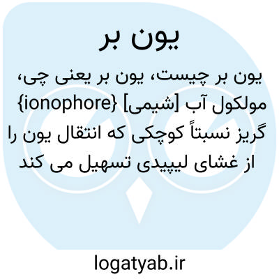 {ionophore} [شیمی] مولکول آب گریز نسبتاً کوچکی که انتقال یون را از غشای لیپیدی تسهیل می کند