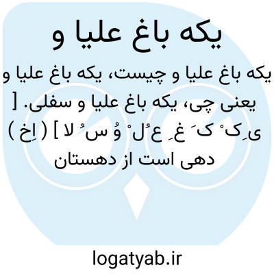 یکه باغ علیا و سفلی. [ ی ِک ْ ک َ غ ِ ع ُل ْ وُ س ُ لا ] ( اِخ ) دهی است از دهستان کوهپایه بخش مرکزی شهرستان ساوه،واقع در 38هزارگزی شمال باختری ساوه و 25هزارگزی راه ساوه به نوبران، با 166 تن سکنه. آب آن از قنات و راه آن مالرو است. ( از فرهنگ جغرافیایی ایران ج 1 ).