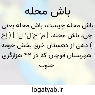 باش محله. [ م َ ح َل ْ ل َ ] ( اِخ ) دهی از دهستان خرق بخش حومه شهرستان قوچان که در 42 هزارگزی جنوب باختری قوچان واقع است.ناحیه ای است کوهستانی و سردسیر با 864 تن سکنه و آب آن از چشمه سار تأمین میشود. محصول عمده آن غلات و شغل مردمش زراعت و مالداری و قالیچه و کرباس بافی و راه آن مالرو است. ( از فرهنگ جغرافیایی ایران ج 9 ).