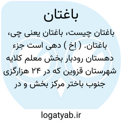 باغتان. ( اِخ ) دهی است جزء دهستان رودبار بخش معلم کلایه شهرستان قزوین که در 24 هزارگزی جنوب باختر مرکز بخش و در 30 هزارگزی راه عمومی واقع است. ناحیه ای است سردسیر با 167 سکنه و آب آن از چشمه سار تأمین میشود. محصول عمده آن غلات و حبوبات و گردو و شغل مردمش زراعت و کرباس بافی و راهش مالرو است. اهالی آن از طایفه رشوند هستند. ( از فرهنگ جغرافیایی ایران ج 1 ).
