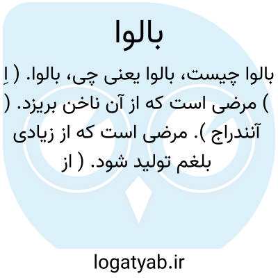 بالوا. ( اِ ) مرضی است که از آن ناخن بریزد. ( آنندراج ). مرضی است که از زیادی بلغم تولید شود. ( از فرهنگ شعوری ج 1 ص 150 ).