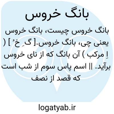 بانگ خروس.[ گ ِ خ ُ ] ( اِ مرکب ) آن بانگ که از نای خروس برآید. || اسم پاس سوم از شب است که قصد از نصف شب الی طلوع فجر میباشد... بعضی برآنند که بانگ زدن خروس بردوقسم است: یکی قدری بعد از نصف شب و دیگری که سه از نصف شب گذشته باشد. ( از قاموس کتاب مقدس ).