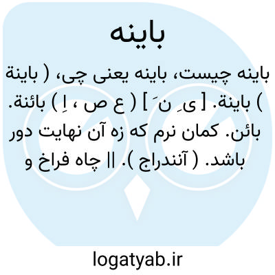 ( باینة ) باینة. [ ی ِ ن َ ] ( ع ص، اِ ) بائنة. بائن. کمان نرم که زه آن نهایت دور باشد. ( آنندراج ). || چاه فراخ و ژرف. ( از آنندراج ) ( از منتهی الارب ). ج، بوائن. و رجوع به باین شود. || طلاقی که رجعت در آن درست نباشد. و هی فاعلة بمعنی مفعوله. ( آنندراج ) ( منتهی الارب ). و رجوع به باین شود.
