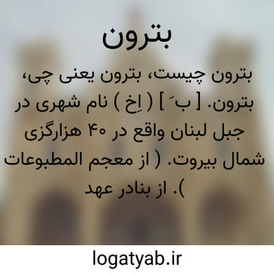 بترون. [ ب َ ] ( اِخ ) نام شهری در جبل لبنان واقع در 40 هزارگزی شمال بیروت. ( از معجم المطبوعات ). از بنادر عهد فینیقی هاست. ( از اعلام المنجد ).