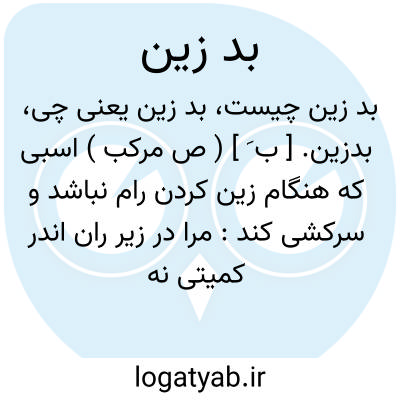 بدزین. [ ب َ ] ( ص مرکب ) اسبی که هنگام زین کردن رام نباشد و سرکشی کند: