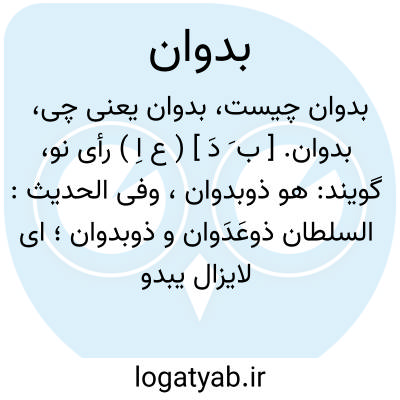 بدوان. [ ب َ دَ ] ( ع اِ ) رأی نو، گویند: هو ذوبدوان، وفی الحدیث: السلطان ذوعَدَوان و ذوبدوان؛ ای لایزال یبدو له رأی جدید. ( منتهی الارب ) ( از ناظم الاطباء ).