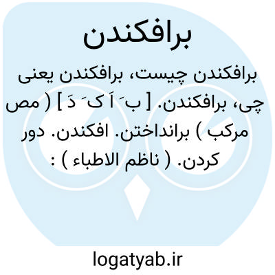 بهامون برافکن پراکنده آب.اسدی ( گرشاسب نامه ). || قی کردن. استفراغ کردن: و کسی را که خون از گلو همی برافکند سود دارد. ( الابنیه عن حقایق الادویه ). || خراب کردن. اسقاط. ( یادداشت مؤلف ). منهدم کردن. نیست و نابود کردن. فانی کردن: خداوند آن دودمان ظالم را برافکند. موبدها را بکش و آتشهاء گبرکان برافکن. ( تاریخ سیستان ). برآن بنهادند که او را بنشانیم و خود اندر پیش او کار همی کنیم و این سپاه خراسان را برافکنیم. ( تاریخ سیستان ). آن دیوار را برافکندند.( یادداشت مؤلف ).