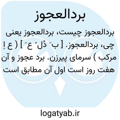 ( اسم ) برد عجوز سرمای پیرزن و آن هفت روز است از آخر زمستان ( سه روز آخز ماه بهمن و ۴ روز اول ماه اسفند ( بعضی اصل آنرا (( بردالعجز ) ) دانند. (( کافتاب من از حمل شد شاد کی زبر العجوزم آید یاد ? ) ) ( نظامی هفت پیکر )