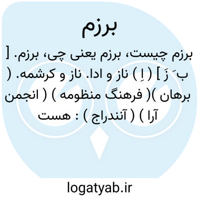 برزم. [ ب َ زَ ] ( اِ ) ناز و ادا. ناز و کرشمه. ( برهان )( فرهنگ منظومه ) ( انجمن آرا ) ( آنندراج ):