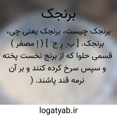 برنجک. [ ب ِ رِ ج َ ] ( اِ مصغر ) قسمی حلوا که از برنج نخست پخته و سپس سرخ کرده کنند و بر آن نرمه قند پاشند. ( یادداشت دهخدا ):