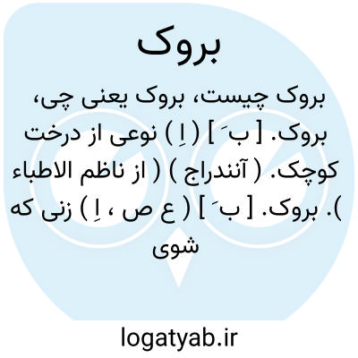 بروک. [ ب َ ] ( ع ص، اِ ) زنی که شوی خواهد و او را پسری رسیده و جوان باشد. ( منتهی الارب ).