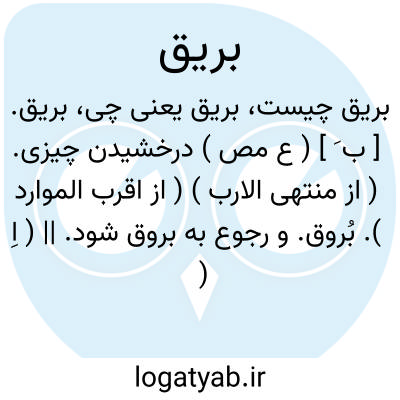 بریق. [ ب َ ] ( ع مص ) درخشیدن چیزی. ( از منتهی الارب ) ( از اقرب الموارد ). بُروق. و رجوع به بروق شود. || ( اِ ) درخشندگی.( منتهی الارب ). تلألؤ. ( اقرب الموارد ). درخشندگی و تابش برق که از ابر می جهد. ( غیاث ): لها [ لصفائح الطلق ] بصیص و بریق. ( ابن البیطار ). و از صهیل اسبان و بریق اسنان دلها و چشمهای مخالفان کور. ( جهانگشای جوینی ). || ( ص ) درخشان. ( غیاث ):