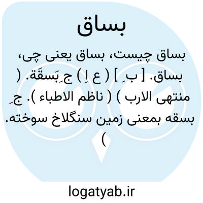 بساق. [ ب َ س سا ] ( اِخ ) نام نهریست در عراق که آن را بزّاق نیزخوانند به زبان نبطی بساق میخوانند و بساق در نبطی بمعنی کسی است که آب را از مجرا قطع کند و برای خود جاری سازد. در نهر بساق فاضل آب سیل فرات گرد می آید و از این رو آن را بزاق گویند. ( از معجم البلدان ).