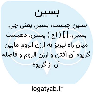بسین. [ ] ( اِخ ) پسین. دهیست میان راه تبریز به ارزن الروم مابین گریوه آق آفتن و ارزن الروم و فاصله آن از گریوه آق آفتن پنج فرسنگ و تا ارزن الروم شش فرسنگ باشد. ( نزهةالقلوب چ 1331 هَ. ق. لیدن ص 183 ).