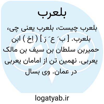 بلعرب. [ ب َ ع َ رَ ] ( اِخ ) ابن سلطان بن سیف بن مالک یعربی، سومین تن از امامان یعربی، از اباضیة در عمان.او شخصی ادیب و فقیه و شاعر بود و بسال 1104 هَ. ق. درگذشت. ( از الاعلام زرکلی ج 1 ص 50 از تحفةالاعیان ).