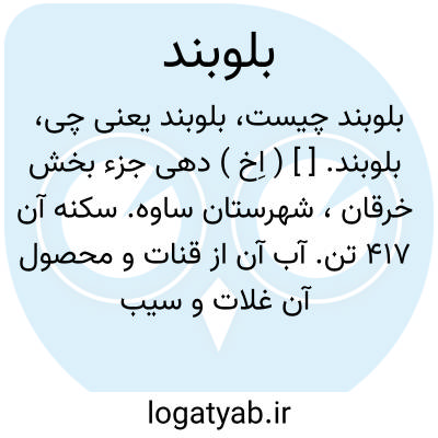 بلوبند. [ ] ( اِخ ) دهی جزء بخش خرقان، شهرستان ساوه. سکنه آن 417 تن. آب آن از قنات و محصول آن غلات و سیب زمینی و انگور است. ( از فرهنگ جغرافیایی ایران ج 1 ).