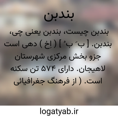 بندبن. [ ب َ ب ُ ] ( اِخ ) دهی است جزو بخش مرکزی شهرستان لاهیجان. دارای 574 تن سکنه است. ( از فرهنگ جغرافیائی ایران ج 2 ).