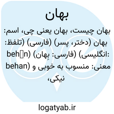 اسم: بهان (دختر، پسر) (فارسی) (تلفظ: behān) (فارسی: بِهان) (انگلیسی: behan)