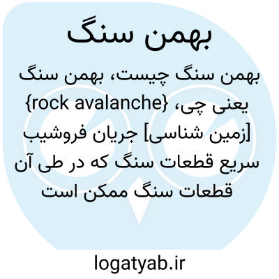 {rock avalanche} [زمین شناسی] جریان فروشیب سریع قطعات سنگ که در طی آن قطعات سنگ ممکن است خردتر شوند یا به صورت گرد درآیند