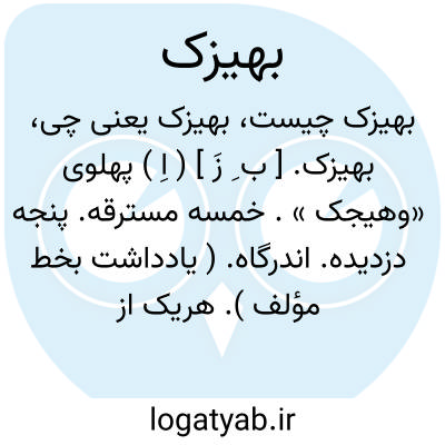 بهیزک. [ ب ِ زَ ] ( اِ ) پهلوی «وهیجک ». خمسه مسترقه. پنجه دزدیده. اندرگاه. ( یادداشت بخط مؤلف ). هریک از دوازده ماه ایران باستان دارای 30 روز بود و سال، 12*30 = 360 روز. بنابراین هر سال شمسی پنج روز کم داشت. برای جبران در آخر هر ماه سال پنج روز دیگر می افزودند تا سال شمسی درست داری 365 روز باشد. این کبیسه سال را در عربی خمسه مسترقه و در فارسی، پنجه دزدیده و بهیزک و در پهلوی،وهیجک و پنجه و پنج وه و گاه و اندرگاه نامیده اند. ظاهراً مصحف آن کلمه در فرهنگها بهترک است. ( فرهنگ فارسی معین ): و پارسیان را از جهت کیش گبرکی نشایست که سال را بیکی روز کبیسه کنند. پس این چهار روز را یله همی کردند تا از وی ماهی تمام گرد آمدی به صدوبیست سال. و آن گاه این ماه را بر ماههای سال زیادت کردندی تا سیزده ماه شدی و نام یکی ماه اندر او دوبار گفته آمدی. و آن سال را بهیزک خواندندی و سپس نیست شدن ملک و کیش ایشان این بهیزک کرده نیامده است باتفاق. ( التفهیم ص 222 ). و رجوع به بهترک شود.