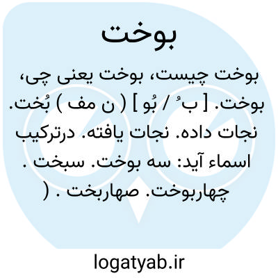 بوخت. [ ب ُ / بُو ] ( ن مف ) بُخت. نجات داده. نجات یافته. درترکیب اسماء آید: سه بوخت. سبخت. چهاربوخت. صهاربخت. ( فرهنگ فارسی معین ). رجوع به بُخت و بوختن شود.