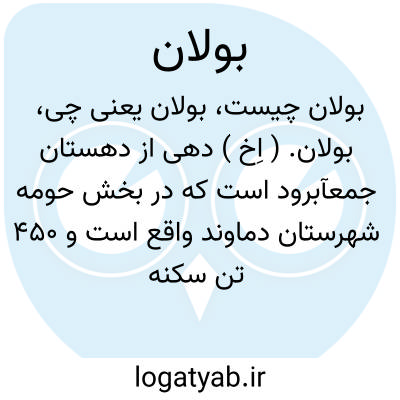بولان. ( اِخ ) دهی از دهستان جمعآبرود است که در بخش حومه شهرستان دماوند واقع است و 450 تن سکنه دارد. ( از فرهنگ جغرافیائی ایران ج 1 ).