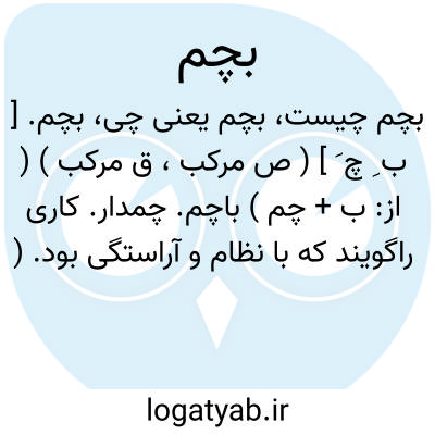 بچم. [ ب ِ چ َ ] ( ص مرکب، ق مرکب ) ( از: ب + چم ) باچم. چمدار. کاری راگویند که با نظام و آراستگی بود. ( برهان قاطع ). نظم. نظام. ترتیب. آراستگی. ( ناظم الاطباء ):